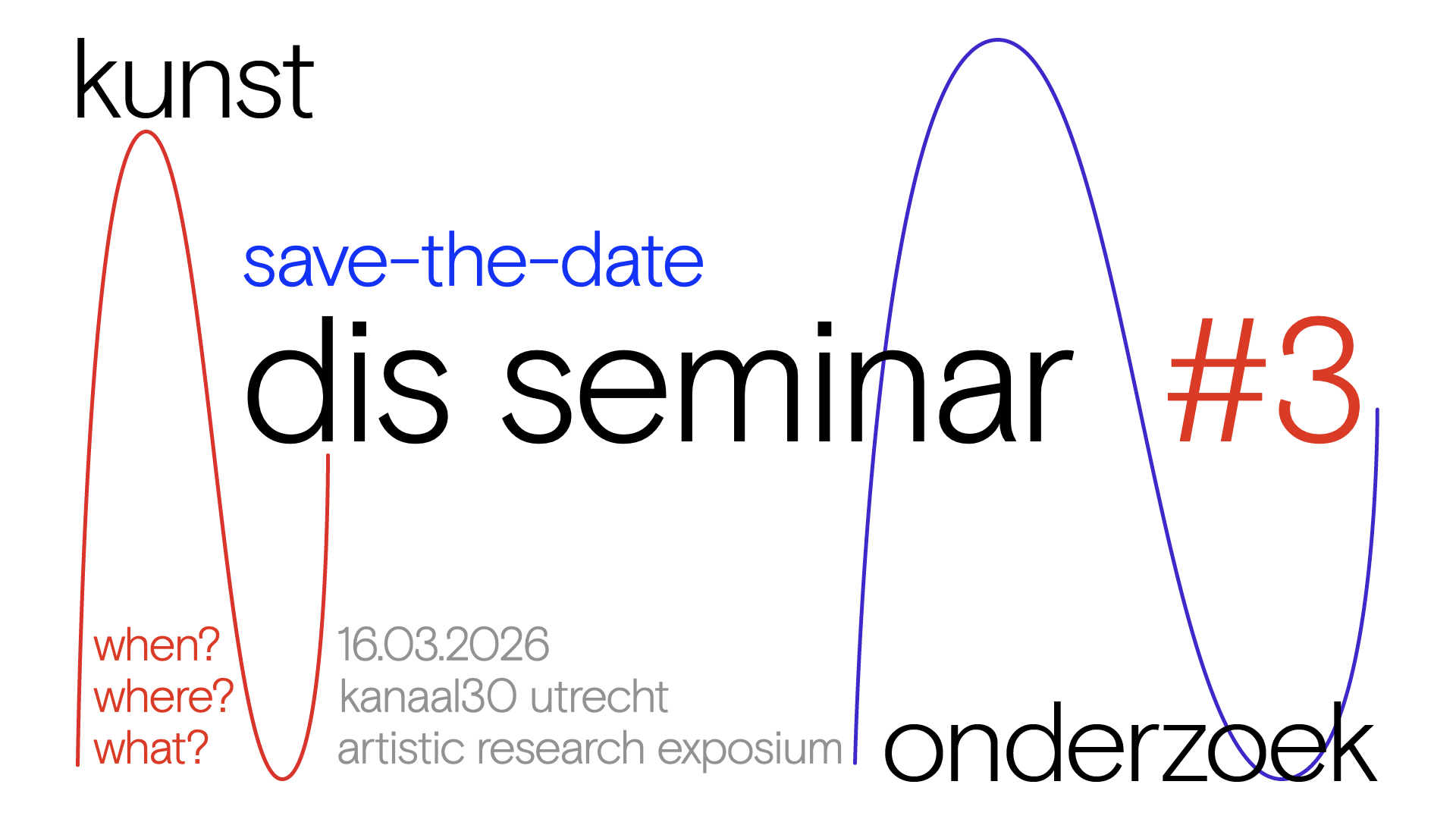 On Monday March 16, 2026 from 10.00h to 17.00h the platform kunst ≈ onderzoek will organize the third edition of DIS_SEMINAR. After the Tolhuistuin (2019) and Fort De Batterijen (2022) this time we’ll settle down in Utrecht and host the exposium at Kanaal30.